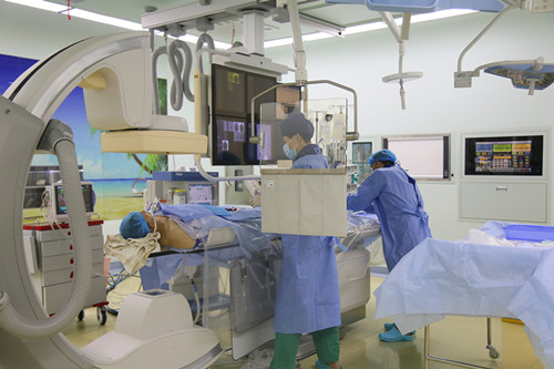 合——介入-外科雜交手術(shù)。介入復(fù)合手術(shù)部利用先進(jìn)的設(shè)備如飛利浦雙C臂血管造影引導(dǎo)下完成介入外科雜交手術(shù),如巨型假性動(dòng)脈瘤、頸內(nèi)動(dòng)脈閉塞等。