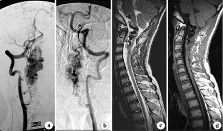 脊髓血管畸形最初稱之為“未成熟畸形”,以高血流量和廣泛而復(fù)雜的動(dòng),靜脈解剖為特點(diǎn),病變可占據(jù)整個(gè)脊髓,侵及硬膜,甚至延及椎體和椎旁組織。