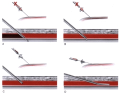 (1)皮膚切口與血管穿刺點(diǎn)有一定距離:角度與厚度決定距離。
