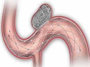 動(dòng)脈瘤栓塞及支架置入術(shù)是在右側(cè)股動(dòng)脈穿刺,置入導(dǎo)引導(dǎo)管(粗導(dǎo)管),將導(dǎo)引導(dǎo)管送入載瘤動(dòng)脈(生長(zhǎng)動(dòng)脈瘤的腦動(dòng)脈)內(nèi)。將一根微導(dǎo)管經(jīng)導(dǎo)引導(dǎo)管送入載瘤動(dòng)脈,并將微導(dǎo)管頭端小心送入動(dòng)脈瘤腔內(nèi),經(jīng)微導(dǎo)管向動(dòng)脈瘤腔內(nèi)送入彈簧圈,利用彈簧圈的機(jī)械閉塞作用以及繼發(fā)的血栓閉塞作用,將動(dòng)脈瘤隔絕于載瘤動(dòng)脈的血循環(huán)之外,從而達(dá)到防止動(dòng)脈瘤再破裂的目的。