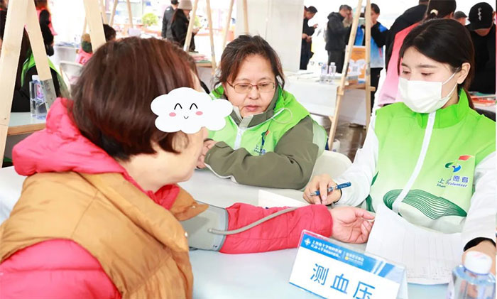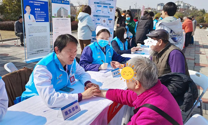 活動(dòng)當(dāng)天一大早,上海藍(lán)十字腦科醫(yī)院余志良主任一行來(lái)到活動(dòng)現(xiàn)場(chǎng),為居民提供醫(yī)療健康咨詢及血壓測(cè)量等服務(wù)。