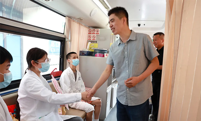 ▲ 領(lǐng)導(dǎo)親切看望慰問獻(xiàn)血志愿者