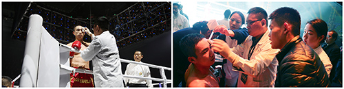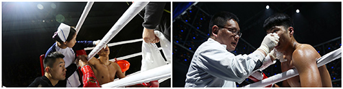 在兩天進(jìn)行的14場(chǎng)捉對(duì)廝殺中,不斷有選手眉弓、嘴角、鼻子等部位外傷出血,上海藍(lán)十字腦科醫(yī)院醫(yī)療急救保障隊(duì)醫(yī)務(wù)人員均第一時(shí)間介入,采取及時(shí)有效的現(xiàn)場(chǎng)治療措施,為選手進(jìn)行止血和傷情判斷。