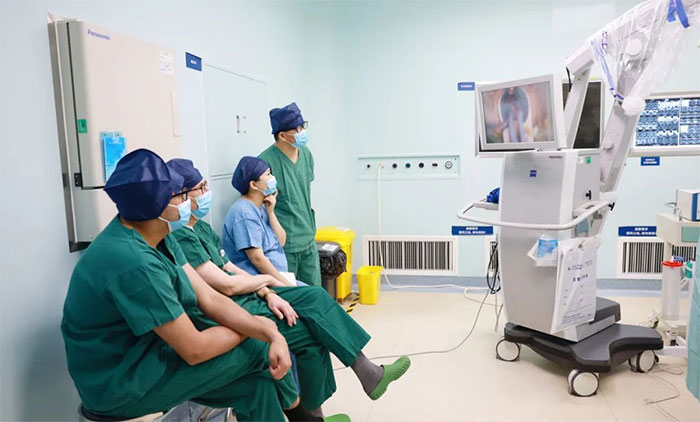 ▲ 觀摩顯微鏡下經(jīng)鼻蝶垂體瘤切除手術(shù)、椎動脈支架置入手術(shù)