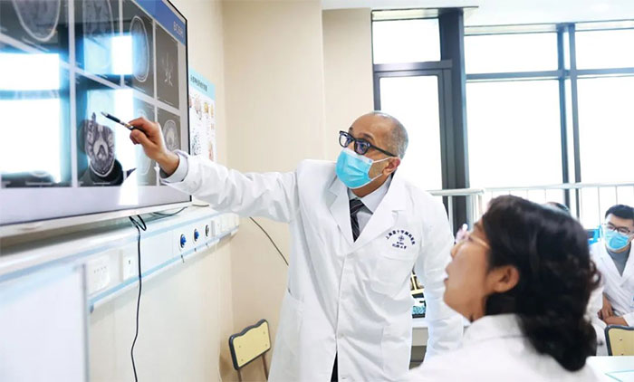當(dāng)天下午,芝加哥大學(xué)醫(yī)學(xué)中心專家們與臨床科室開展了會診討論。副院長潘耀良,副院長周克祥,神經(jīng)內(nèi)科7A病區(qū)主任張靜波,醫(yī)院神經(jīng)外科學(xué)術(shù)副院長、神經(jīng)外科6A病區(qū)主任于耀宇,神經(jīng)外科6B病區(qū)主任潘仁龍,醫(yī)院學(xué)術(shù)副院長、神經(jīng)內(nèi)科4A病區(qū)主任席剛明教授,神經(jīng)內(nèi)科4A病區(qū)副主任王貴平博士以及部分青年醫(yī)生參加討論。