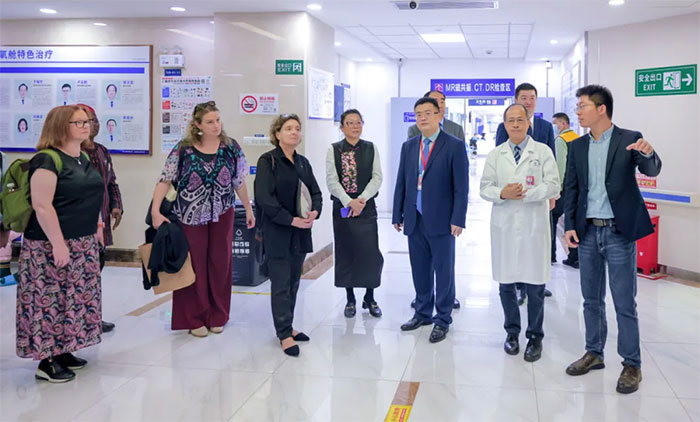 抵達(dá)醫(yī)院后,專家代表們一行實地參觀了醫(yī)院9F重癥醫(yī)學(xué)科、8B神經(jīng)內(nèi)七科、7A神經(jīng)內(nèi)三科、高壓氧科、影像科、放療科等重點特色科室。