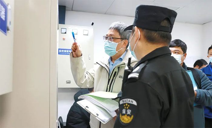 專家組一行先后深入消控室、消防水泵房、消防強(qiáng)排室、高壓配電間、液氧站、電梯機(jī)房、信息機(jī)房等重點(diǎn)區(qū)域,仔細(xì)檢查消防主機(jī)、自動(dòng)報(bào)警系統(tǒng)、室內(nèi)外消火栓等消防設(shè)施設(shè)備的配置和維保記錄是否規(guī)范。