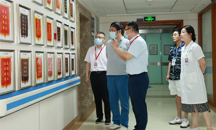 王曉東主任實地深入醫(yī)院手術(shù)室、9F重癥醫(yī)學(xué)科、7A神經(jīng)內(nèi)三科及示教室、電子閱覽室、黨建文化走廊等區(qū)域參觀。參觀過程中,朱敏總經(jīng)理向王曉東主任介紹了醫(yī)院臨床教學(xué)、文化內(nèi)涵、運營管理、滿意度測評、優(yōu)質(zhì)服務(wù)等方面工作建設(shè)情況。
