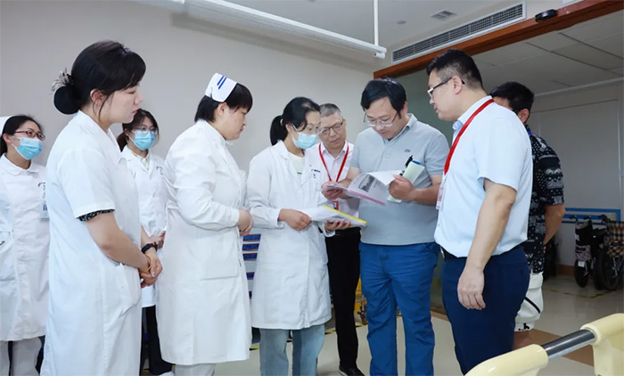 醫(yī)院總經(jīng)理兼書記朱敏、副院長周克祥及相關(guān)職能科室負(fù)責(zé)人等陪同調(diào)研交流。