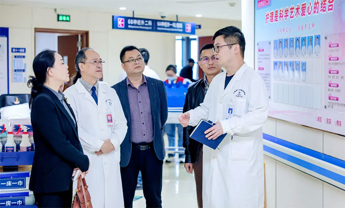 座談會后,寶雞市高新區(qū)領導一行在院領導的陪同下,實地走訪了重癥醫(yī)學科、手術室、8A神經(jīng)內(nèi)六科、7A神經(jīng)內(nèi)三科、6B神經(jīng)外二科、康復醫(yī)學科、高壓氧科、影像科等特色科室,雙方就醫(yī)療質(zhì)量管理、醫(yī)療技術開展等進行了充分交流。