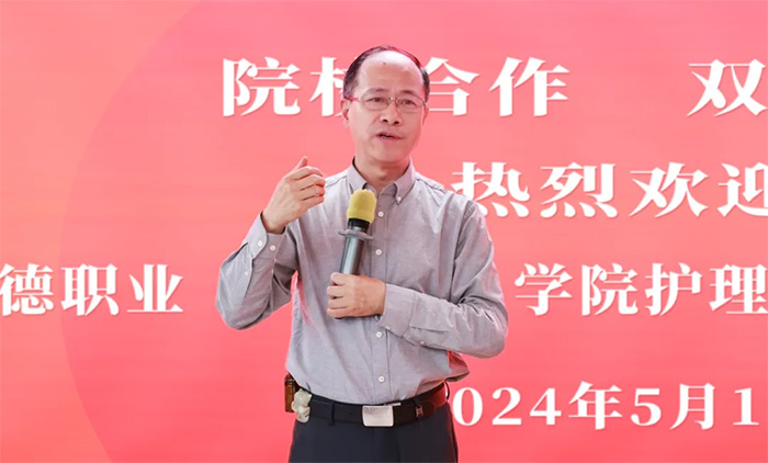 隨后,院長項耀鈞致辭,代表醫(yī)院對邦德學(xué)院師生一行的來訪表示熱烈歡迎,并回顧了與邦德學(xué)院締結(jié)合作的初衷及展開良性聯(lián)動的點滴,喚起美好回憶。項院長介紹,藍十字志存高遠、腳踏實地,兩次通過國際JCI認證、兩次獲評“三A五星”醫(yī)院;堅持“三分治療、七分護理”,以“加強?谱o士培養(yǎng)”為重要抓手,持續(xù)提升護理質(zhì)量與安全;為更好地提升臨床教學(xué)基地建設(shè)水平和人才培養(yǎng)質(zhì)量,建立了科學(xué)的?谱o士培養(yǎng)機制,組建了優(yōu)質(zhì)的教師隊伍,精心備課、用心研磨,并在一次次試講、反思、優(yōu)化中反復(fù)精雕細琢形成優(yōu)質(zhì)教學(xué)課程。