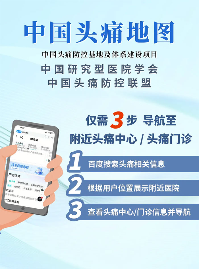 作為中國頭痛防控基地及體系建設(shè)項目,由中國研究型醫(yī)院學(xué)會、中國頭痛防控聯(lián)盟等聯(lián)合發(fā)布的“中國頭痛防控體系地圖”,大大方便了頭痛患者在正規(guī)醫(yī)療機構(gòu)就醫(yī),對頭痛規(guī)范化診治具有十分重要的意義。