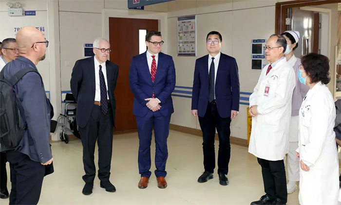 最后,UCM專家在院領(lǐng)導(dǎo)的陪同下,參觀了醫(yī)院手術(shù)室、重癥醫(yī)學(xué)科、神經(jīng)內(nèi)三科、神經(jīng)外二科和腦血管病科等多個(gè)重點(diǎn)科室,與科室醫(yī)護(hù)進(jìn)行了親切交流。在交流過程中,UCM專家們?cè)敿?xì)了解了科室人才隊(duì)伍建設(shè)、患者診療等情況,并就一些典型病例的臨床診療方案進(jìn)行了探討。此外,專家們還實(shí)地探訪了高壓氧科、放療科、影像科等醫(yī)技科室,對(duì)醫(yī)院醫(yī)療設(shè)備及服務(wù)作進(jìn)一步了解。