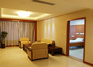 V IP艙裝飾考究,茶幾、電視、音響等一應(yīng)俱全,寬敞舒適