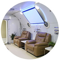 高壓氧艙共分為4艙,其中2個(gè)治療艙,1個(gè)VIP艙,1個(gè)過(guò)渡艙;
