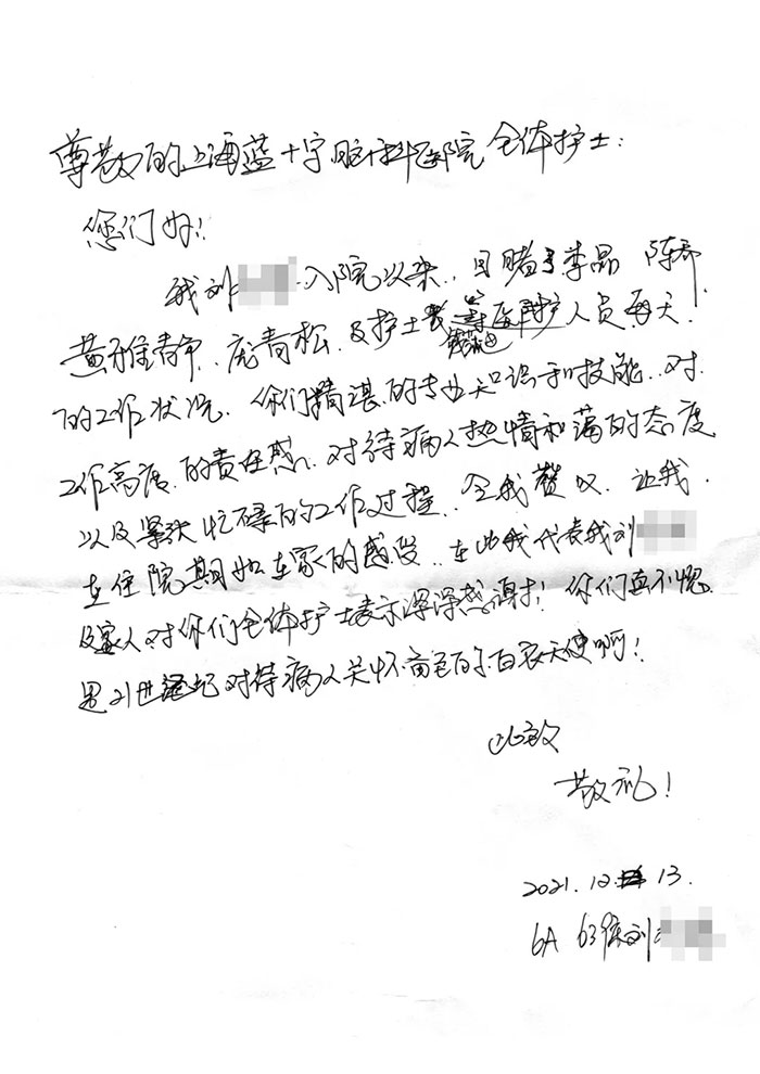 重拾健康,患者的感謝就是最美的勛章。真摯的情意灑落紙間,烙燙進(jìn)每一位醫(yī)護(hù)人員的心田。無(wú)論是6A神經(jīng)外科病區(qū)醫(yī)護(hù)團(tuán)隊(duì),7B腦血管病科團(tuán)隊(duì),還是8B神經(jīng)內(nèi)科重癥監(jiān)護(hù)室的全體醫(yī)護(hù),在12月這個(gè)冬季,感受到的不只是寒冷,還有來(lái)自患者的“暖陽(yáng)”。