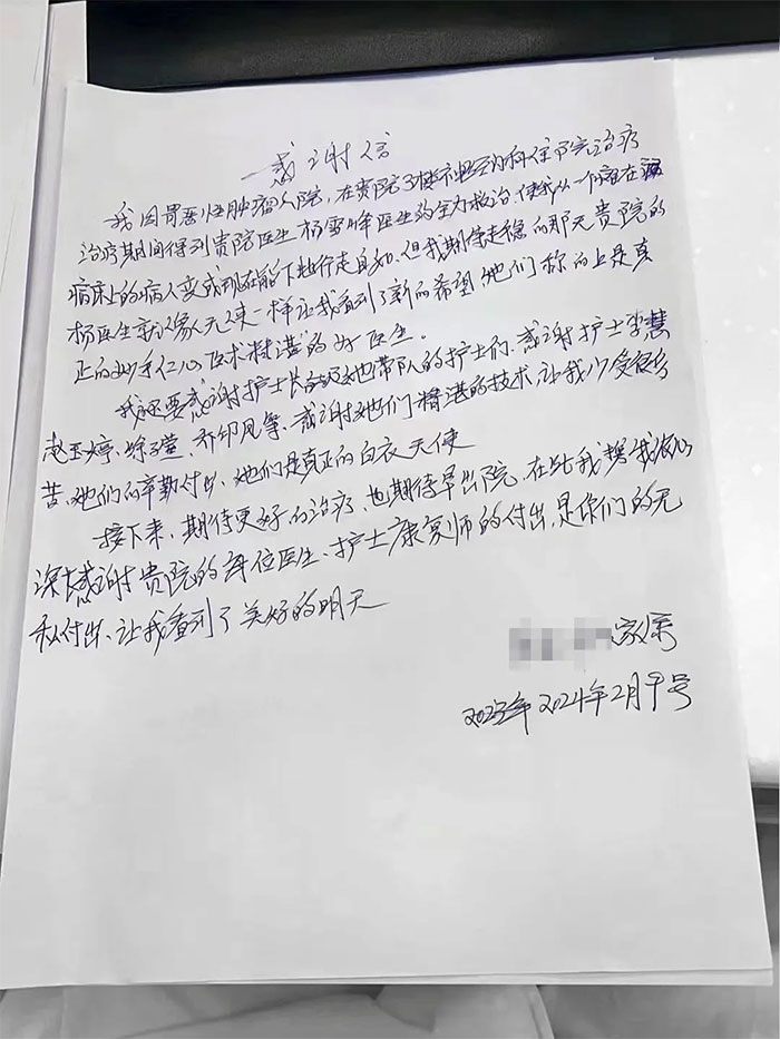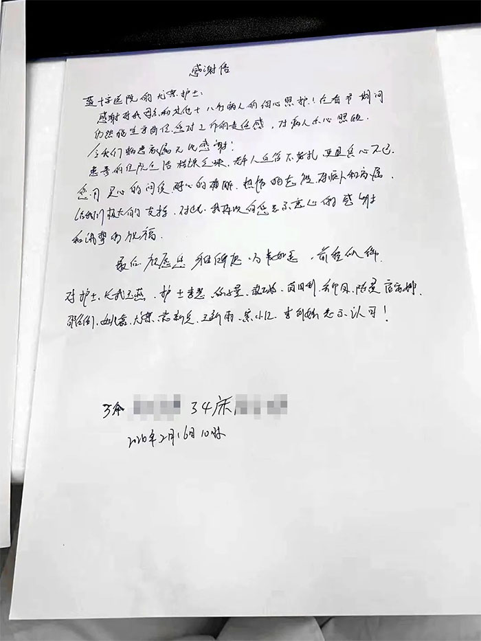 ▲ 3A病區(qū)收到8封感謝信