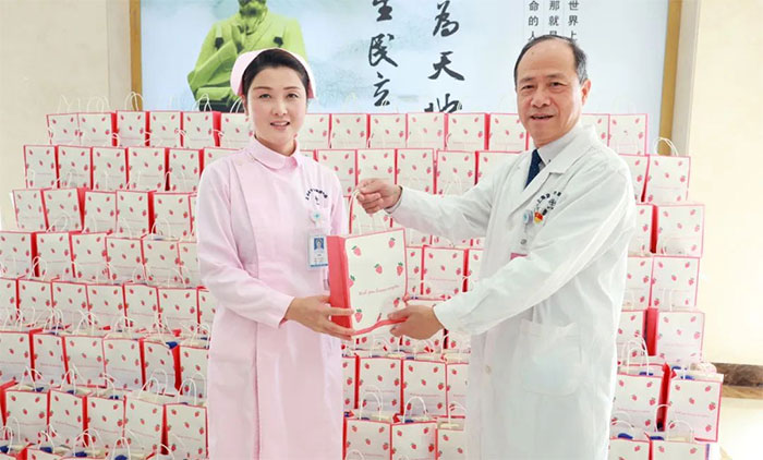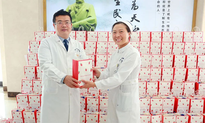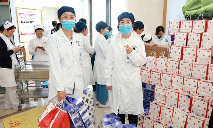 女員工們收到禮物后,臉上洋溢著幸福的笑容,為醫(yī)院送上的節(jié)日關(guān)愛而倍感溫暖。她們互相分享著喜悅,傳遞著祝福。