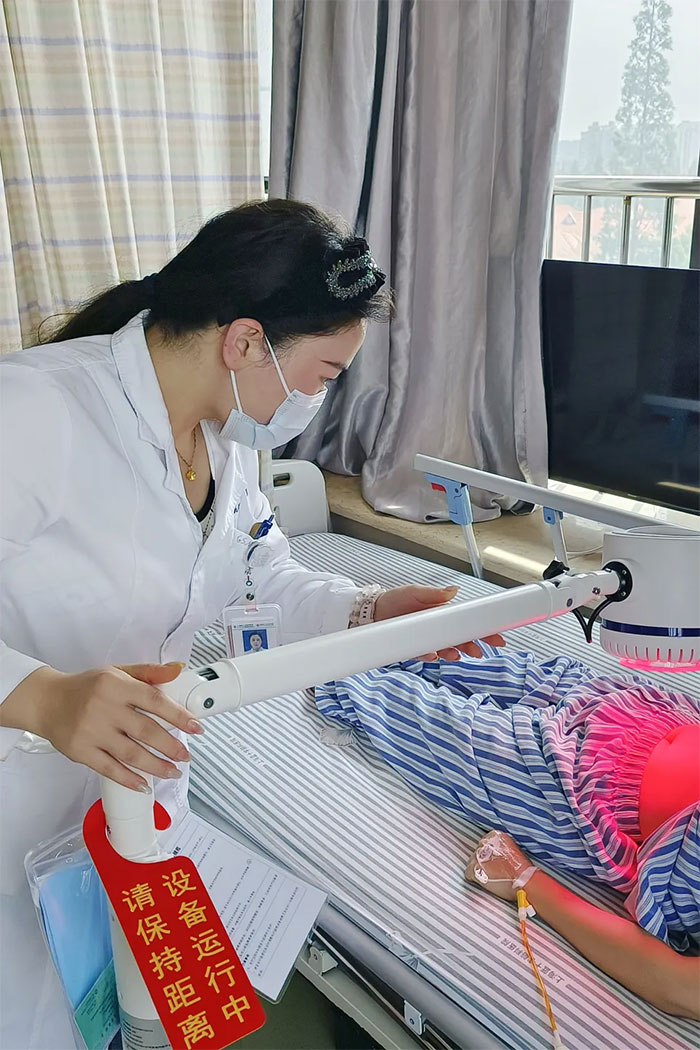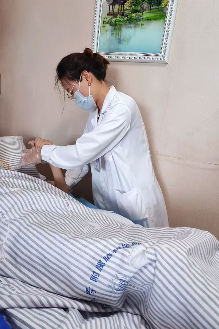 治療室、病床旁,推拿、針灸、紅外線治療......假期里,依然隨處可見中醫(yī)師忙碌的身影。趙宇蘭副主任及醫(yī)師王偉、羅思思等悉心為患者實(shí)施各種中醫(yī)治療。他們時(shí)而附身詢問患者感受,時(shí)而調(diào)整針/儀器的角度或者推拿的力度,專注的神情仿佛在雕琢一件藝術(shù)品。“看到患者眉頭舒展,說癥狀有好轉(zhuǎn),再苦再累都值了。”