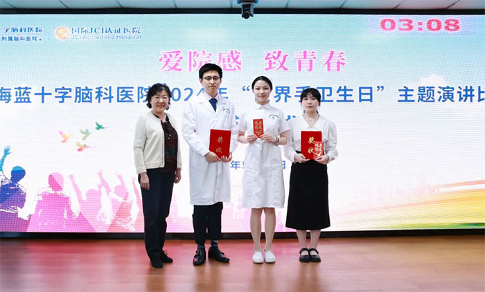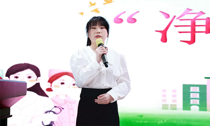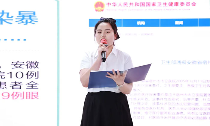 其中,神經(jīng)外科6B病區(qū)參賽選手黃秀夫、張依莎用詩意的語言將科室日常院感防控工作娓娓道來,“健康所系,性命相托,以我之手,護佑患者”,他們展示了藍十字醫(yī)學青年的良好風范。神經(jīng)外科6A病區(qū)參賽選手宣海霞在演講中穿插了“七步洗手法”的現(xiàn)場演示和精彩的舞蹈表演,讓人眼前一亮。神經(jīng)內(nèi)科4B病區(qū)參賽選手韓曉慧站在臨床醫(yī)生的角度,從抗菌藥物濫用與醫(yī)院感染管理的角度帶來深入思考,她知性大方,音色優(yōu)美,讓人如沐春風。其他選手的演講也可圈可點,精彩紛呈。