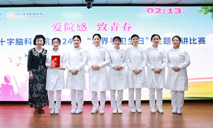 經(jīng)過激烈角逐,評委組本著公平公正的原則,從演講內(nèi)容、語言表達、形象風度、會場效果四個方面進行現(xiàn)場評分,最終神經(jīng)外科6A病區(qū)參賽選手宣海霞及參演團隊脫穎而出,榮獲一等獎;神經(jīng)外科6B病區(qū)參賽選手黃秀夫、張依莎,神經(jīng)內(nèi)科5B病區(qū)參賽選手嚴敏榮獲二等獎;神經(jīng)內(nèi)科3A病區(qū)參賽選手蔡小紅、滿田利,神經(jīng)內(nèi)科4B病區(qū)參賽選手韓曉慧,神經(jīng)內(nèi)科8A病區(qū)參賽選手段甫艷榮獲三等獎。