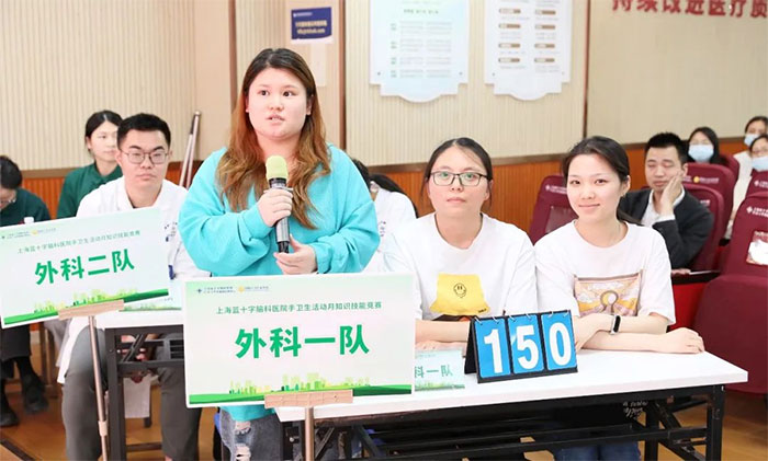 手衛(wèi)生是控制醫(yī)源性感染、減少致病微生物傳播的重要措施。為強化醫(yī)院手衛(wèi)生文化建設(shè),規(guī)范手衛(wèi)生行為,進一步提高醫(yī)務(wù)人員的手衛(wèi)生依從性和正確率,預(yù)防及控制院內(nèi)感染的發(fā)生,以今年“5.5世界手衛(wèi)生日”為契機,上海藍(lán)十字腦科醫(yī)院舉辦了以“共同加快行動,拯救生命”為主題的五月手衛(wèi)生知識技能競賽活動。