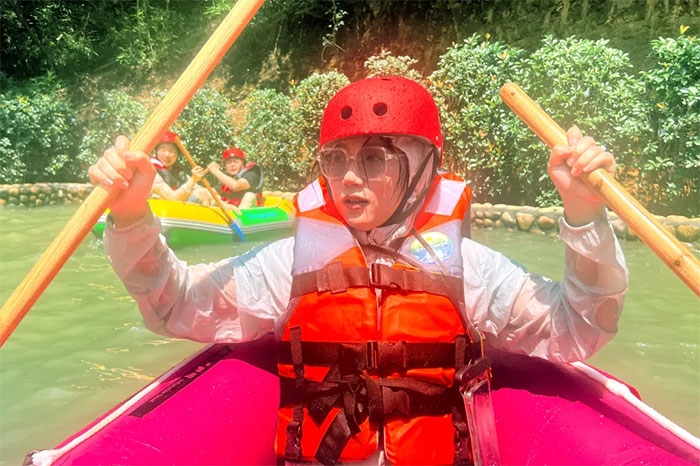 炎炎夏日,正是漂流的好時節(jié)。漂長2.8km、150m米落差,大家乘坐著漂流艇,乘風破浪于筆直茂盛的水杉林,感受水流激蕩的清涼脈搏;穿梭于茂密的竹林間,讓心跳與浪花同頻共振。清澈的碧水,及風馳電掣的旋轉(zhuǎn)、漂移、俯沖的刺激,載著大家的笑臉蕩漾水花飛濺處。