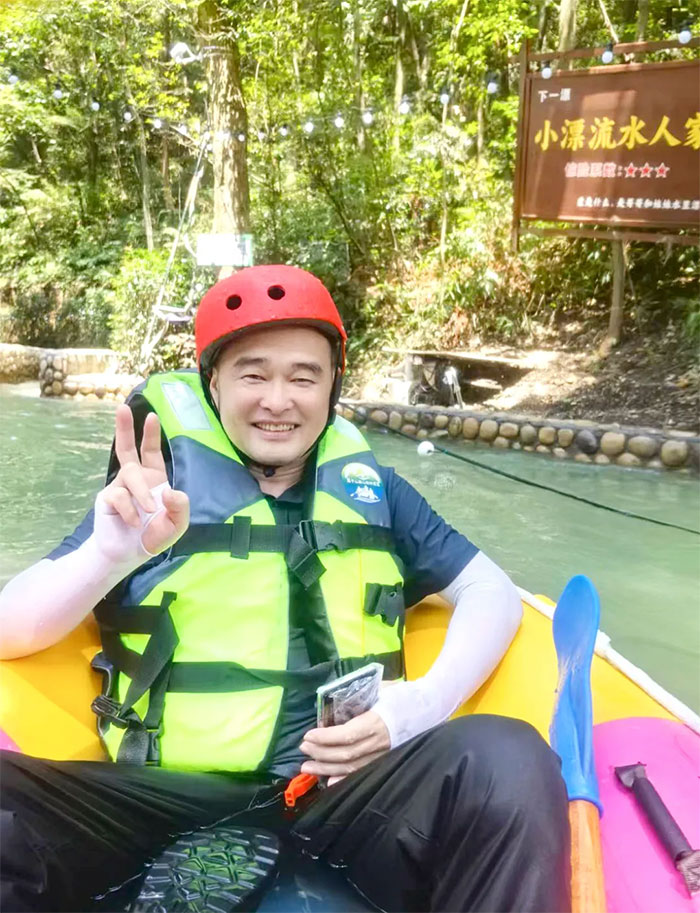 午飯稍作休息后,大家抵達莫干山高山森林漂流點,穿戴好救生衣、頭盔,全副武裝,蓄勢待發(fā)!