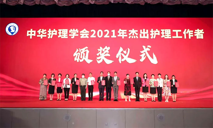 ▲ 王春秀榮獲中華護(hù)理學(xué)會(huì)“杰出護(hù)理工作者”稱號(hào)(右七)