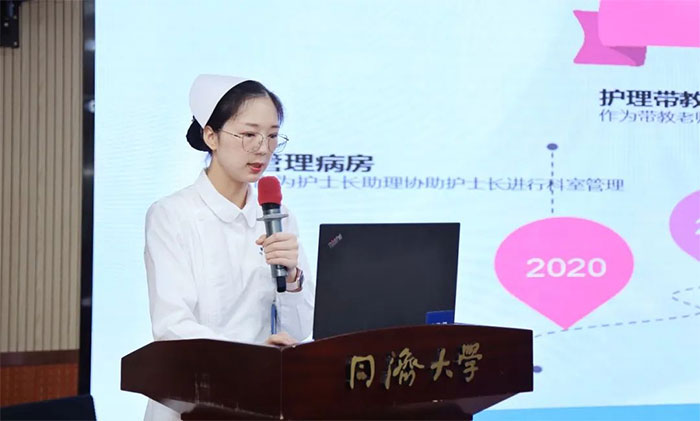 會(huì)議現(xiàn)場,競聘人員個(gè)個(gè)精神抖擻、端莊秀麗。在主持人的引導(dǎo)下,按照競聘序列,競聘人員逐一從自我簡介、工作經(jīng)歷、自身優(yōu)勢、崗位認(rèn)知、抗疫經(jīng)歷,以及今后的工作思路等多個(gè)方面,向評(píng)委們作了深入的講解和匯報(bào)。其中不乏一些創(chuàng)新思維和全新理念,對(duì)護(hù)理和管理工作起到了一定的啟發(fā)作用。