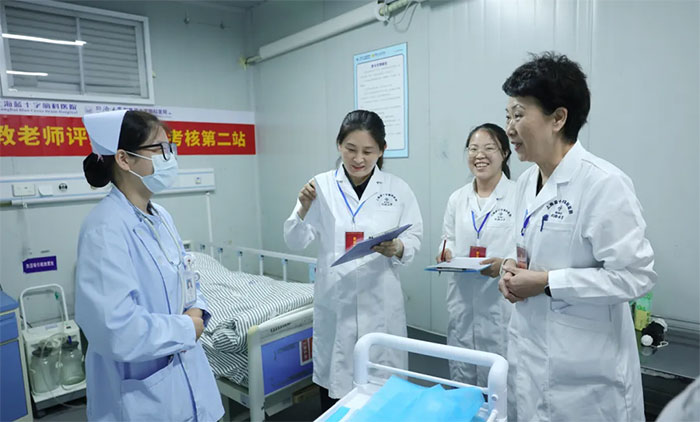 隨后,督導(dǎo)組專家分成六路,嚴(yán)格對照護(hù)理質(zhì)量考核評價表要求,通過查閱臺賬、現(xiàn)場督查、技能操作考試、人員訪談等形式進(jìn)行督導(dǎo)檢查。內(nèi)容涵蓋護(hù)理教研室及臨床科室教學(xué)臺賬、科室護(hù)理實(shí)習(xí)生整體護(hù)理帶教、實(shí)習(xí)生及帶教老師技能操作考試、住院患者對護(hù)理實(shí)習(xí)生滿意度調(diào)查、實(shí)習(xí)生宿舍管理等多方面。