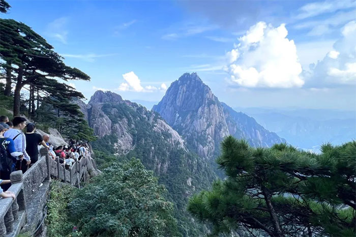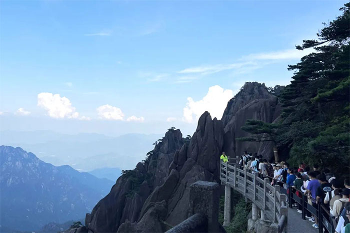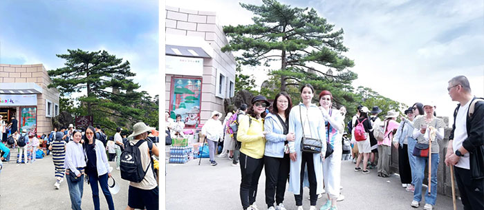 旅程的第一站,便是暢游黃山大景區(qū)。8月12日一大早,大家開始前往云谷索道登山,然后從光明頂?shù)竭_迎客松。