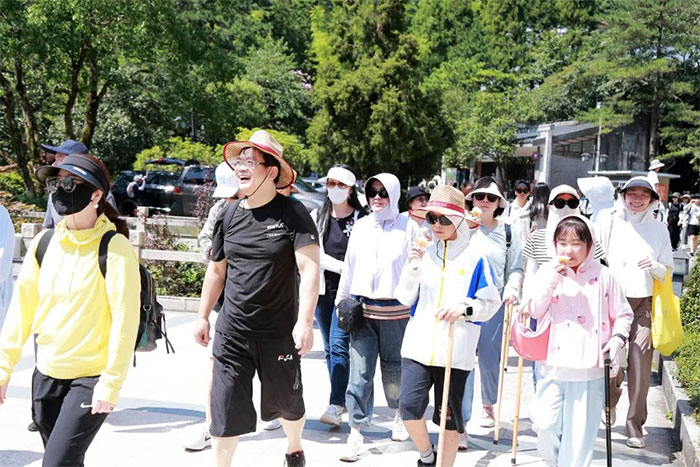 ▲ 經(jīng)索道上山后,開心合影