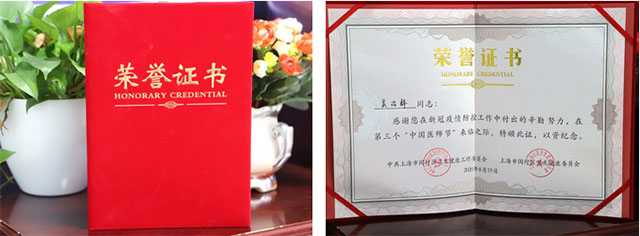 ▲ 區(qū)衛(wèi)健委頒發(fā)的榮譽證書