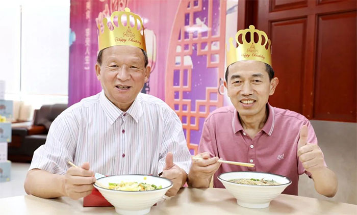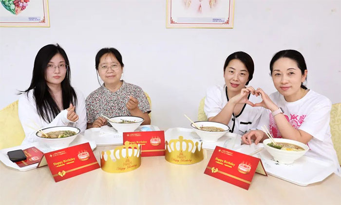 生日會上,院領導給大家送去精美的生日禮物和生日賀卡,大家吃著“長壽面”,分享著生日蛋糕,互致問候,許下美好心愿,讓生日會現(xiàn)場洋溢著歡樂的氛圍。