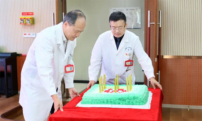 最后,朱敏總經(jīng)理、項(xiàng)耀鈞院長(zhǎng)為醫(yī)師們送上專門定制的“中國(guó)醫(yī)師節(jié)快樂(lè)”大蛋糕。蠟燭燃起,香甜彌漫開(kāi)來(lái),那是溫暖與感動(dòng)的滋味,不僅承載著真摯的節(jié)日祝福,還體現(xiàn)著藍(lán)十字大家庭的濃濃關(guān)愛(ài)。
