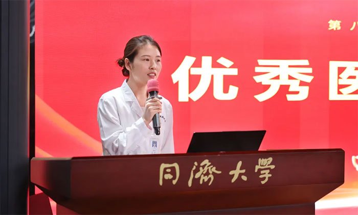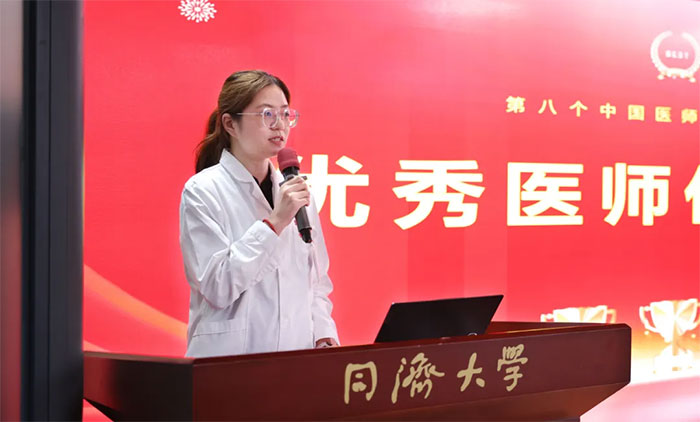 ▲ 優(yōu)秀醫(yī)師(藥師、技師)代表發(fā)言