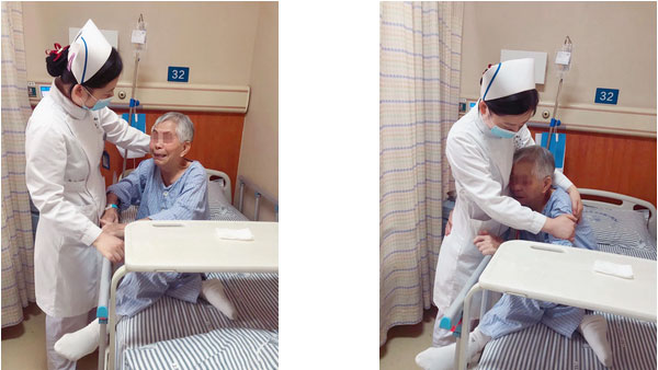 耄耋老人觸景感傷 護士長擁抱慰藉