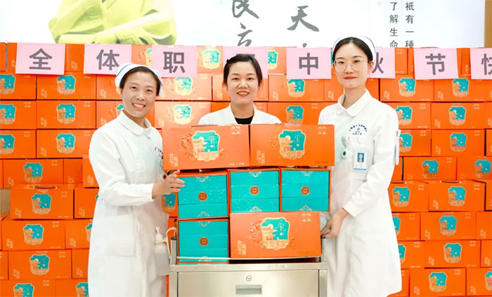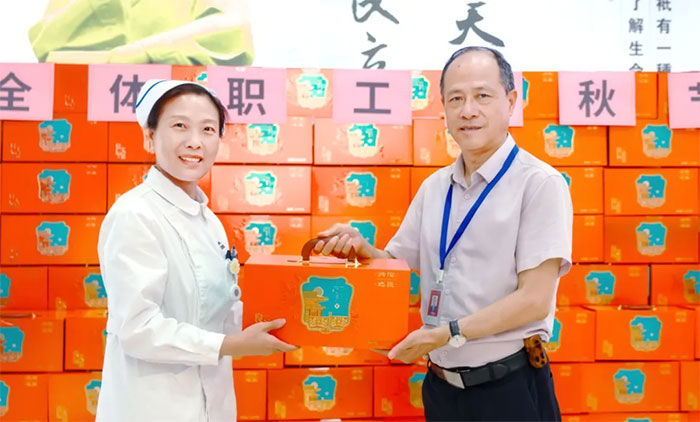 伴隨著祝福話語和關(guān)切的問候,朱敏書記和項(xiàng)耀鈞院長等一一為大家遞上月餅禮盒。一盒盒月餅,承載著醫(yī)院對全體職工的真摯祝福和濃濃關(guān)愛,也傳遞著家的溫暖。