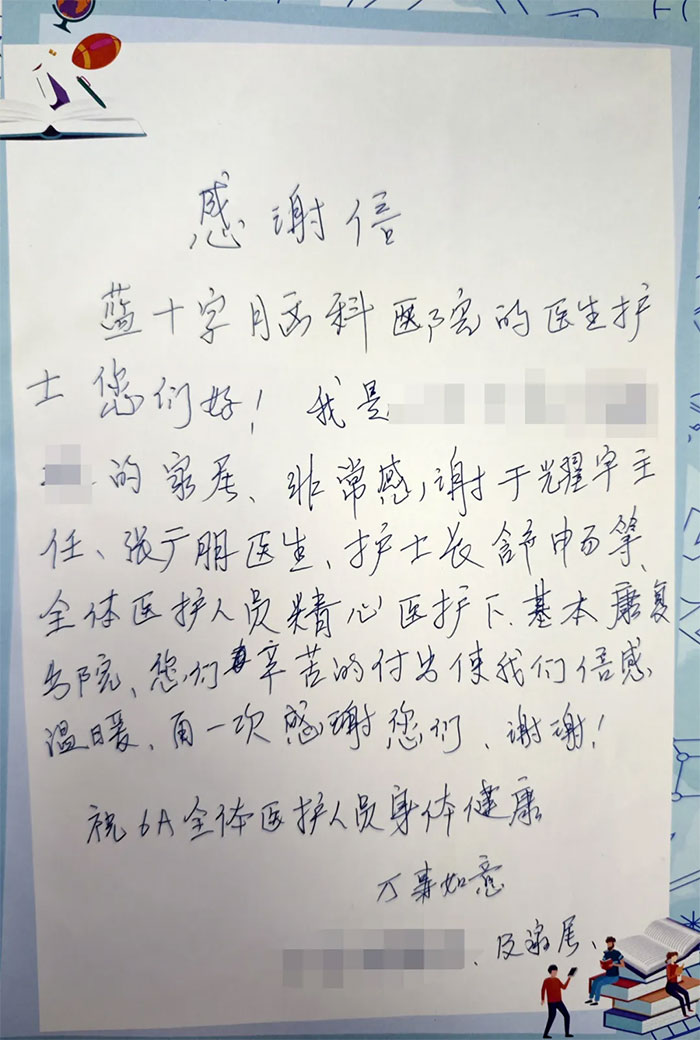 ▲ 患者家屬手寫(xiě)的感謝信