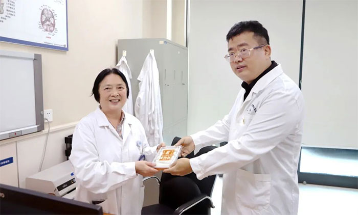 醫(yī)院總經理兼書記朱敏,院長項耀鈞,副院長潘耀良、周克祥,副總經理兼工會主席吳春芳,副總經理吳啟航等院領導深入病房,與科主任、護士長一起,親手送上美味的重陽糕,向老年患者致以節(jié)日的祝福。
