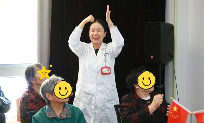 醫(yī)院門診部、客服部主任羅佳帶領老人們跟隨視頻一起做“提神醒腦手指操”。院感科王曉靜和微型消防站站長陳偉智分別為老人們演唱了京劇《梨花頌》及歌曲《朋友》;永司嚯x,也傳遞了溫暖,現(xiàn)場彌漫著歡聲笑語。