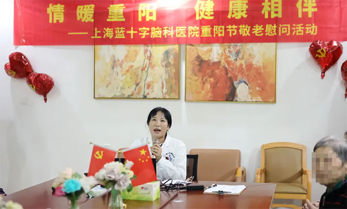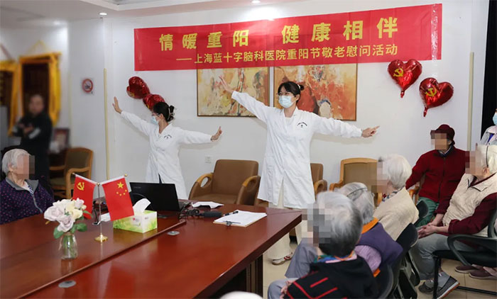 金秋十月,丹桂飄香。在中華民族傳統(tǒng)佳節(jié)“重陽節(jié)”與第20個“世界卒中日”來臨之際,為弘揚敬老愛老傳統(tǒng)美德,守護長者腦健康,10月28日下午,上海藍十字腦科醫(yī)院“藍小醫(yī)”志愿服務隊在8B腦血管病四科副主任陳泥的帶領下,帶著對長者的深切關懷,走進七寶敬老院,開展了“情暖重陽 ,健康相伴”主題健康慰問活動;顒佑舍t(yī)院門診部客服科主任羅佳主持。
