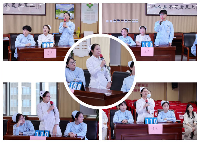 下午13:30,競(jìng)賽在緊張而熱烈的氣氛中正式拉開(kāi)帷幕。醫(yī)院護(hù)理部主任王春秀、副主任閻友芬,相關(guān)科室護(hù)士長(zhǎng)、護(hù)理帶教老師及護(hù)理同仁們齊聚一堂,共同見(jiàn)證了這場(chǎng)知識(shí)與智慧碰撞、師道與學(xué)風(fēng)交融的精彩賽事。護(hù)士長(zhǎng)李楠楠和陳婷婷擔(dān)任裁判,護(hù)士長(zhǎng)丁世琪主持活動(dòng)。