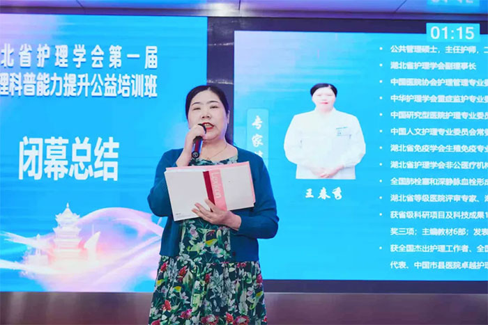 王主任表示,護(hù)理科普是連接專業(yè)醫(yī)療與公眾健康的重要橋梁紐帶,需結(jié)合臨床特色與患者需求,打造“精準(zhǔn)化、場(chǎng)景化”的科普模式。“科普不是簡單的知識(shí)灌輸,而是要像做臨床護(hù)理一樣精準(zhǔn)對(duì)接需求。” 王春秀主任呼吁廣大護(hù)理同仁共同推動(dòng)科普經(jīng)驗(yàn)共享,探索整合護(hù)理、?婆嘤(xùn)等創(chuàng)新路徑,為健康中國建設(shè)貢獻(xiàn)護(hù)理力量。