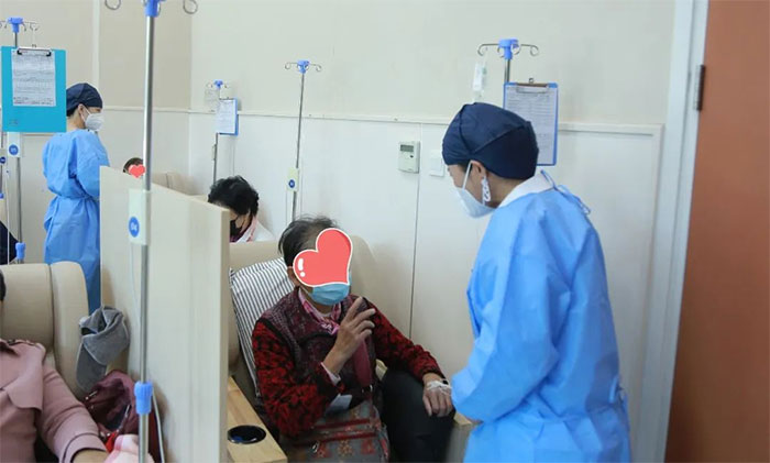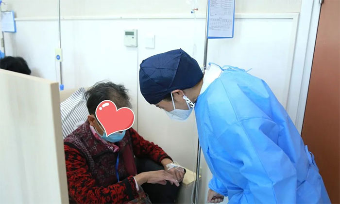 不到一個月的時間,張福英和劉非凡就和這些患者打成了一片。每次都會主動關(guān)心、詢問他們的身體恢復情況,閑時還會為他們科普輸液常識。巡視的時候,遇到需要幫助的患者,更是不遺余力地及時為他們排憂解難。