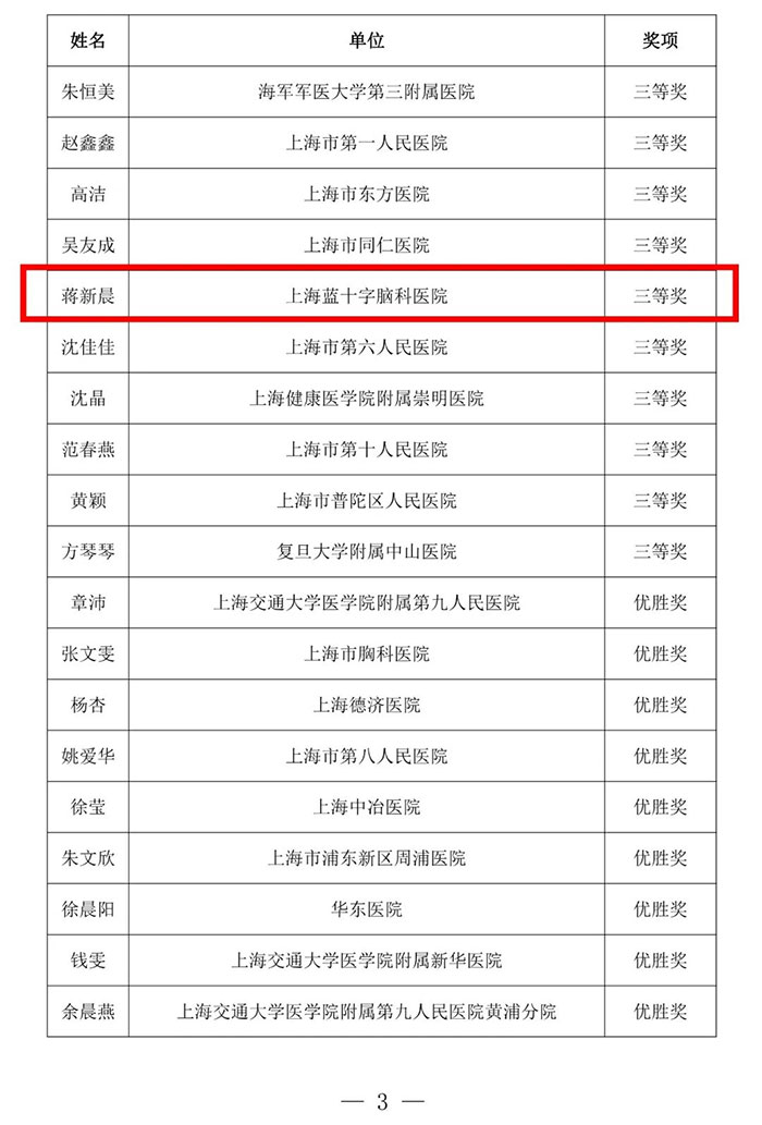 今年是上海市護理學會成立一百周年。為紀念上海護理百年歷程中的感動瞬間,弘揚傳承護理職業(yè)精神,上海市護理學會組織開展了“薪火傳承百年路 仁心篤行續(xù)華章”護理故事演講比賽。來自全市111項參賽作品進入初賽,入圍現(xiàn)場演講46項。結(jié)合演講主題與內(nèi)容及15位專家評審意見等,上海藍十字腦科醫(yī)院腦血管病科護士蔣新晨榮獲比賽三等獎。