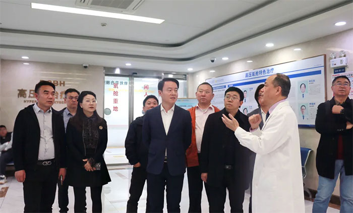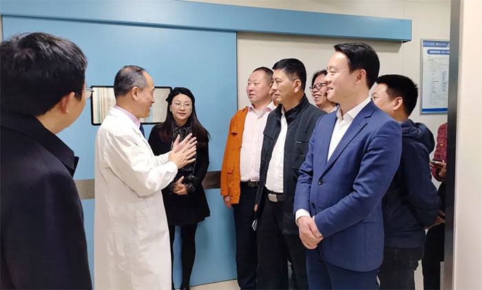 吳會長及商會會員企業(yè)家們在項(xiàng)耀鈞院長的陪同下,參觀了醫(yī)院手術(shù)室、神經(jīng)重癥監(jiān)腦復(fù)蘇病區(qū)、神經(jīng)外/內(nèi)科重癥監(jiān)護(hù)病區(qū)、腦血管病病區(qū)、康復(fù)科、高壓氧科、影像科、放療科等重點(diǎn)特色科室。參觀過程中,項(xiàng)院長向大家簡要介紹了醫(yī)院的整體規(guī)模、服務(wù)內(nèi)容、技術(shù)設(shè)備等,讓嘉賓及企業(yè)家門對醫(yī)院“服務(wù)行業(yè)、服務(wù)社會、服務(wù)患者”的服務(wù)理念有了初步的了解。