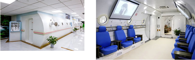 ▲ 上海藍(lán)十字腦科醫(yī)院配備有4艙10門高壓氧艙群