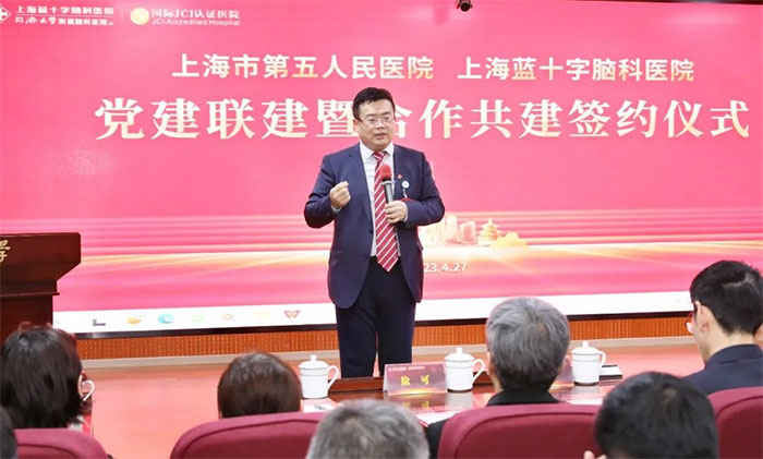 4月27日下午,復(fù)旦大學(xué)附屬上海市第五人民醫(yī)院與上海藍(lán)十字腦科醫(yī)院黨建聯(lián)建簽約儀式在上海藍(lán)十字腦科醫(yī)院大會(huì)議室舉行。